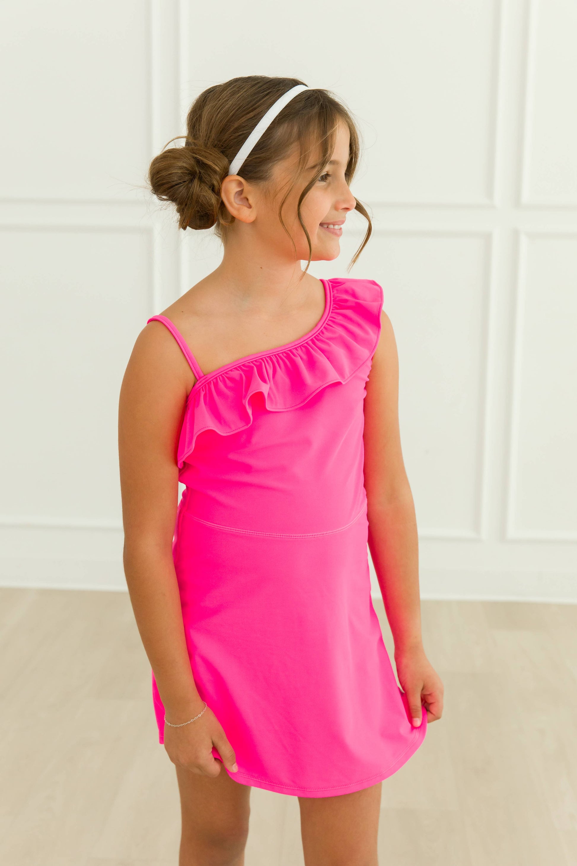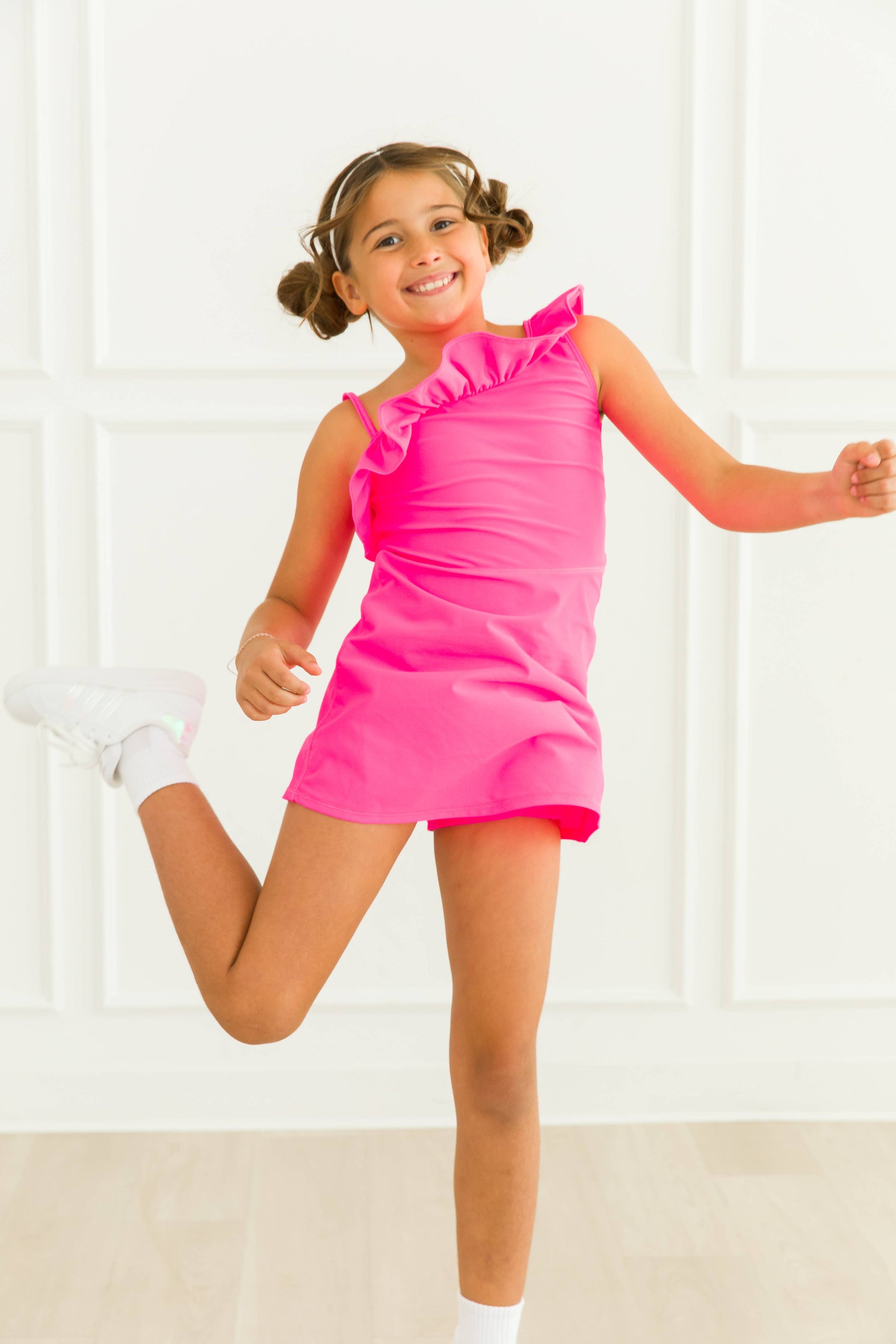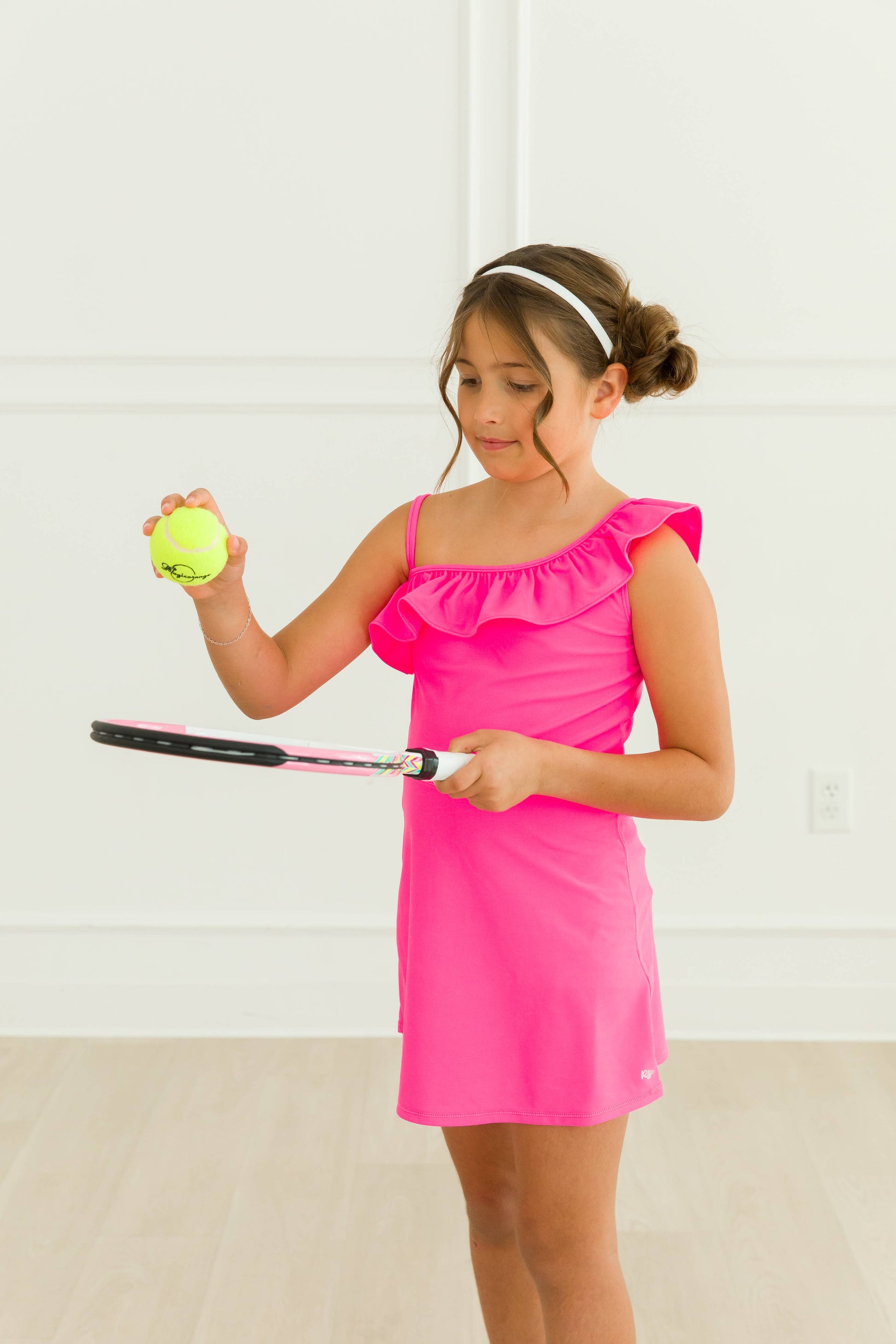 Girls Neon Magenta Active Tennis Dress & Bike Short Set